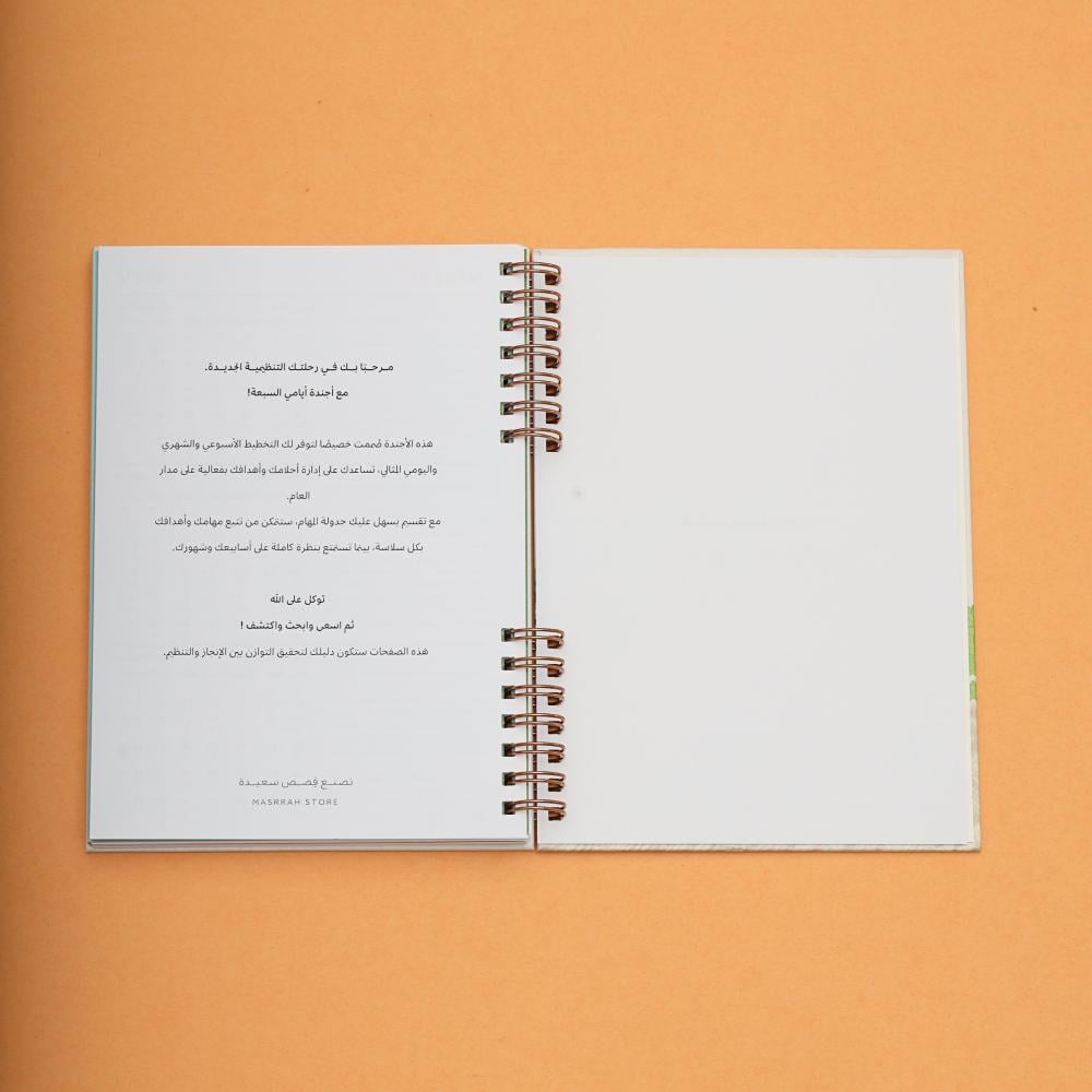 هذه الأجندة تجمع بين التصميم المبسط والتنظيم الشامل لكل مهامك اليومية خلال الاسبوع، تم تصميمها لتناسب احتياجاتك وتساعدك على تحقيق أهدافك.