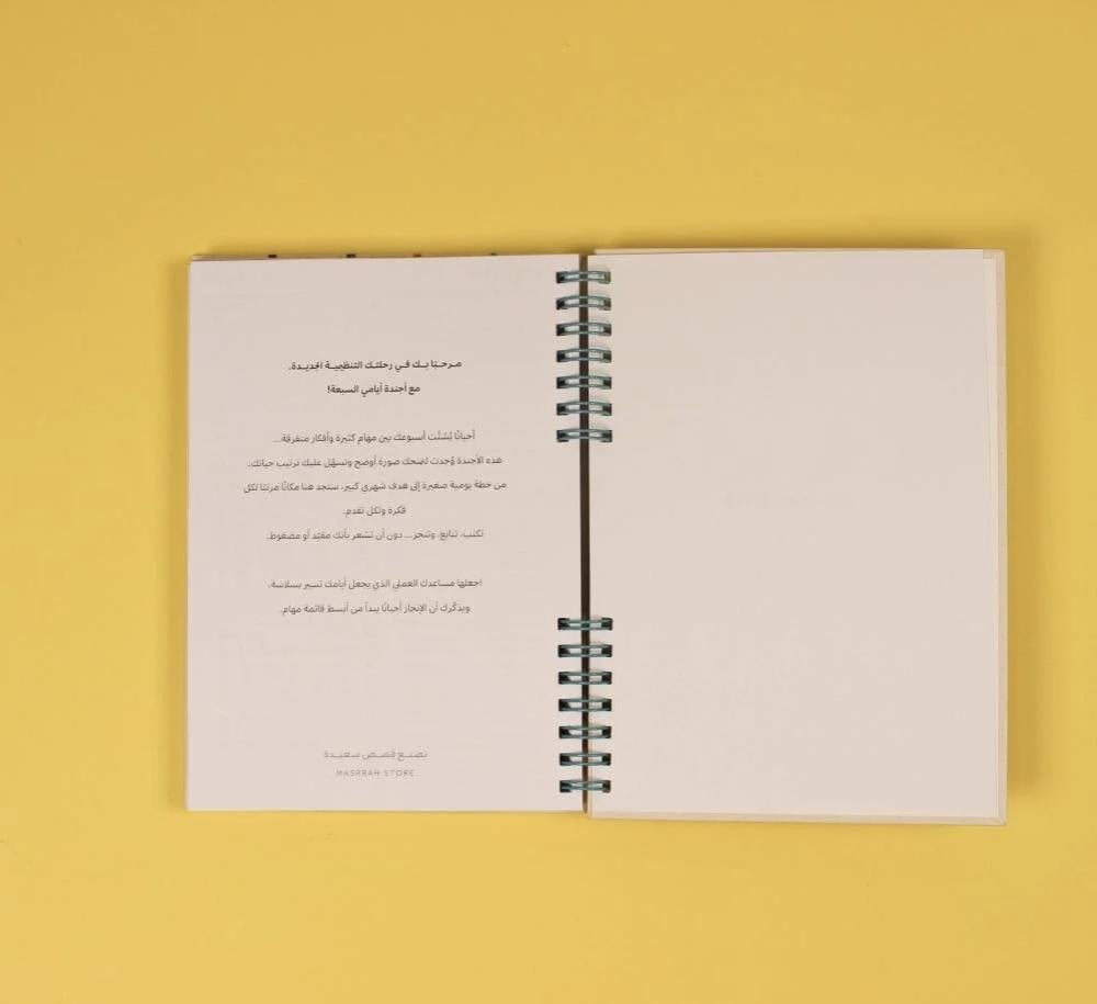 هذه الأجندة تجمع بين التصميم المبسّط والتنظيم الشامل لكل مهامك اليومية خلال الأسبوع، تم إعدادها لتناسب احتياجاتك وتساعدك على تحقيق أهدافك بسهولة ووضوح.