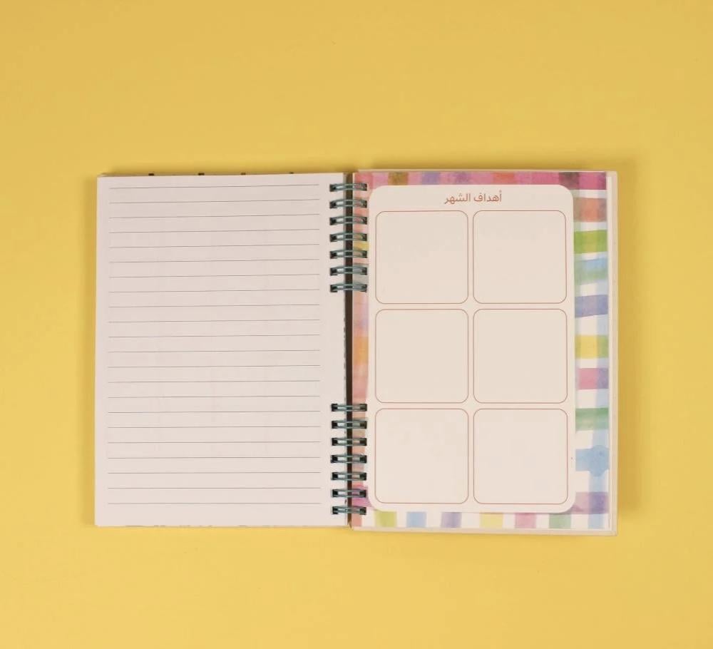 • فواصل شهرية ملونة مع عبارات مختلفة، مع مساحة خاصة لتحديد أهداف كل شهر، لإضافة لمسة مميزة لكل شهر.