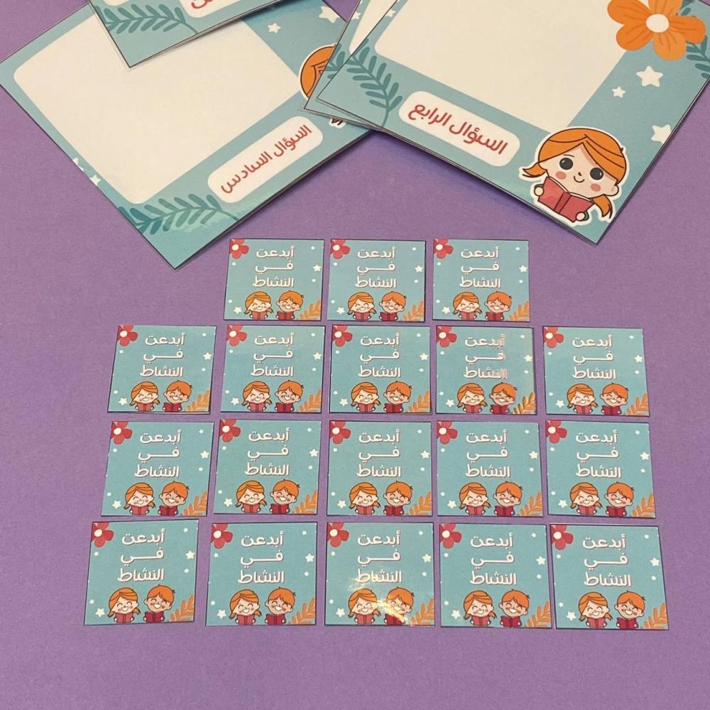 - تحدد المعلمة طالبة تقوم بوضع الاسئلة على عدد البطاقات