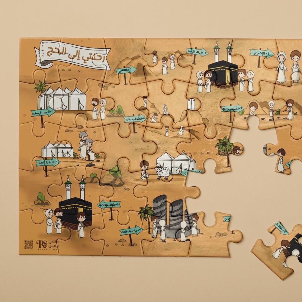أيام ذي الحجة المباركة وقت رائع ليتعرف طفلك على مناسك الحج من خلال صندوق رحلتي إلى الحج على شكل كعبة حيث يحتوي الصندوق على لعبة بازل ممتعة توضح رحلة الحاج بداية من الإحرام والقدوم إلى مكة المكرمة ونهاية مناسك الحج بطواف الواداع, كما يوجد داخل الصندوق دفتر تعليمي وترفيهي لتشجيع الطفل على تعلم كل مناسك من مناسك الحج مع صفحة تلوين له.