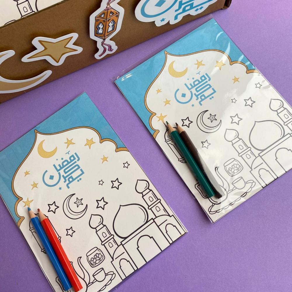 توزيعات للأطفال عبارة عن مُغلف بداخله بطاقة تلوين وألوان خشبية
