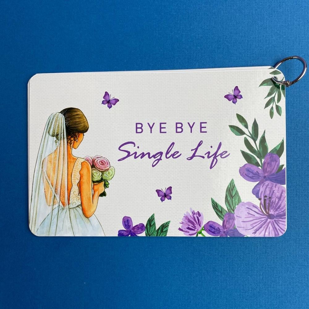 يحتوي على عدة بطاقات / اقطعي حبل العزوبية + خذي المسكة + البسي الطرحة + اقطعي الكيكة + اشعلي الشمعة + وقعي التعهد