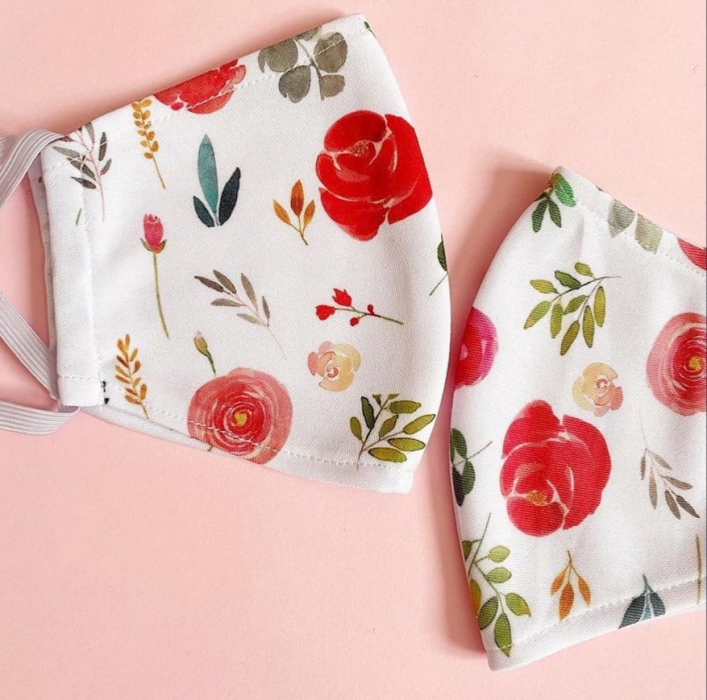 كمامة موردة أبيض وفوشي