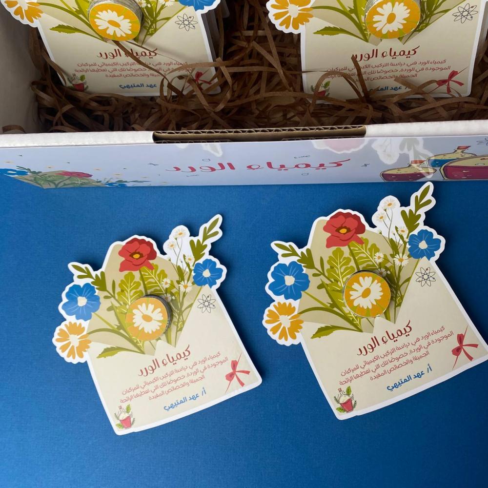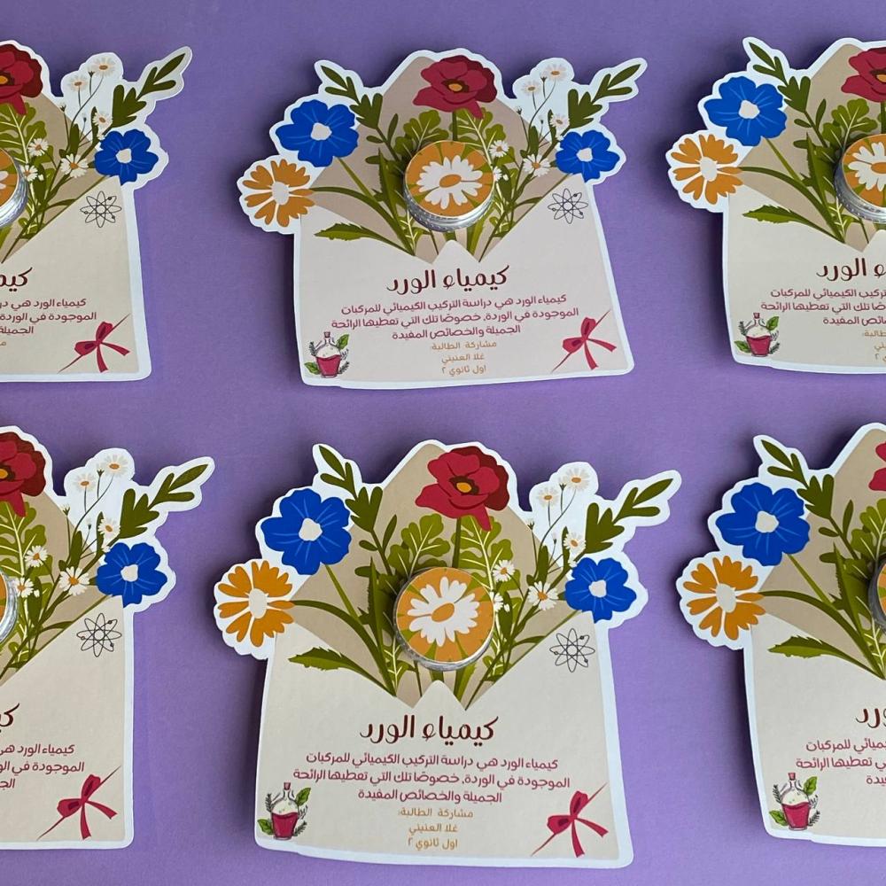 توزيعات كيمياء الورد | بطاقة انيقة مُضاف إليها علبة شفافة بداخلها كريم يد برائحة الورد