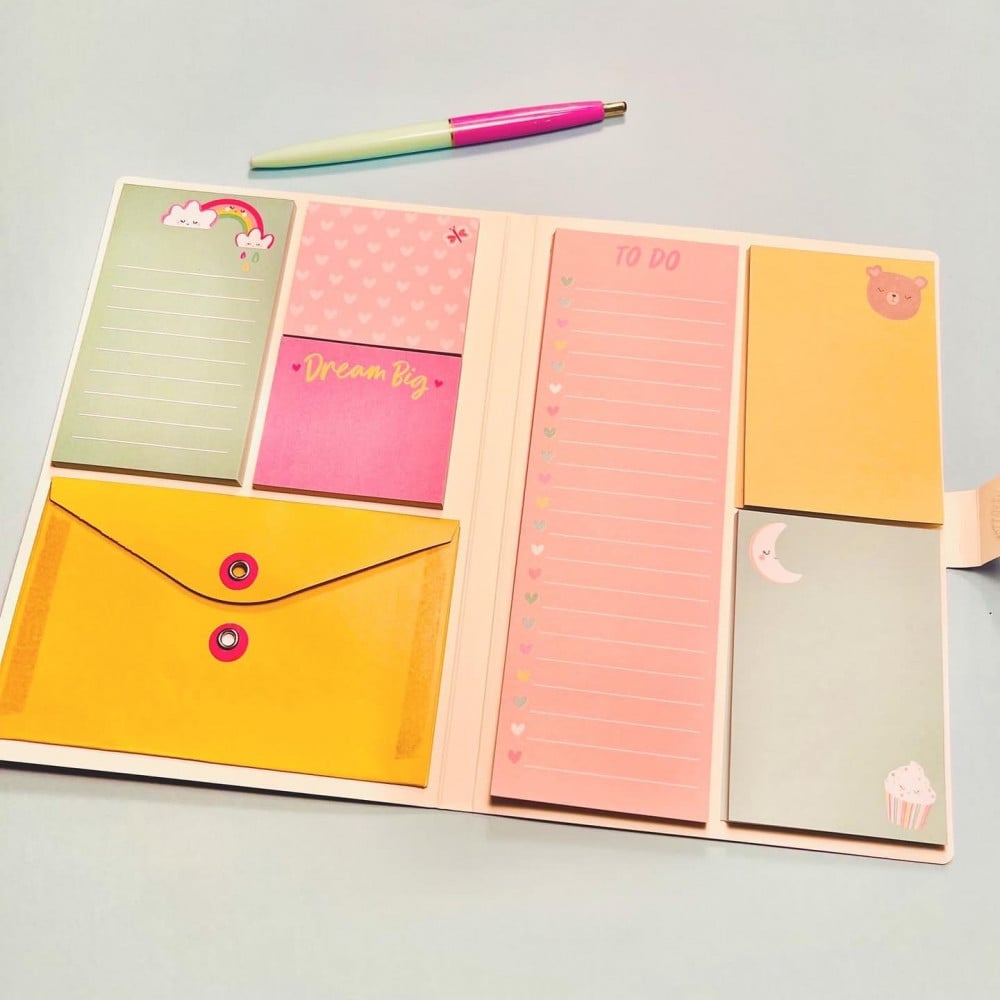 يتكون المغلف من الداخل من 6 نوتات ورقية + ظرف لوضع رسائلكم ✨💛