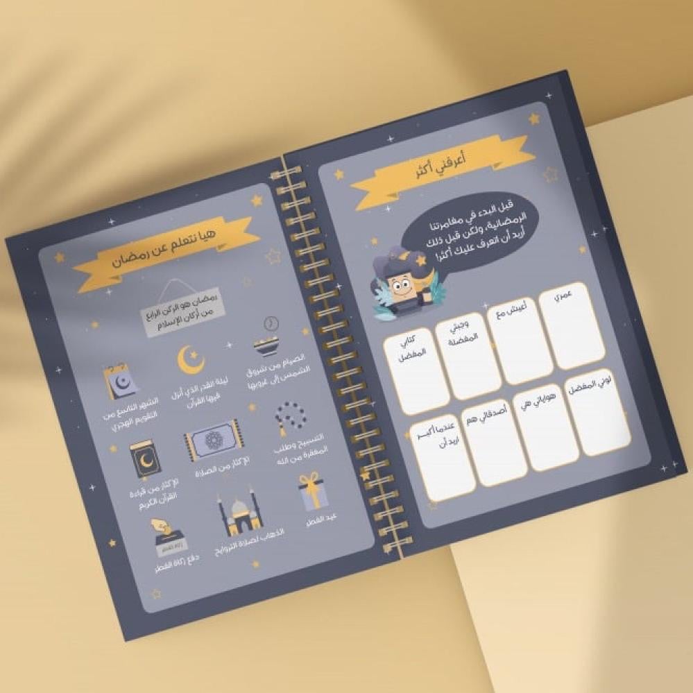 تم تصميم المفكرة للأطفال لتأخذهم في رحلة تعليمية وتفاعلية خلال شهر رمضان لتساعدهم على تنمية مهاراتهم المعرفية والشخصية من خلال إكمال النشاطات التعليمية اليومية بالإضافة إلى تتبع صيامهم في رمضان.